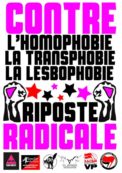 Contre l’homophobie, la lesbophobie, la biphobie, la transphobie, riposte radicale !