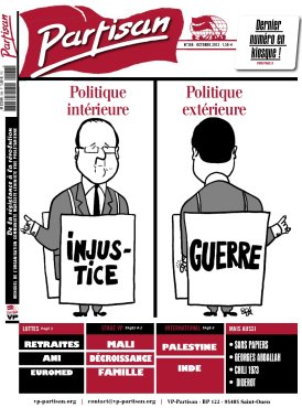 L’impérialisme, c’est la guerre. Affrontements militaires, et affrontements de classes, effets différents, mais cause identique : la crise économique du capitalisme auquel l’impérialisme français fait face avec bien plus de difficultés que ses concurrents. Guerre impérialisme pour préserver ou conquérir des positions et des intérêts. Guerre de classe en France contre les exploités qu’il faut encore plus exploiter, pour sauver les profits et être plus fort (compétitif) dans la guerre économique. Attaques sur les conditions de vie et de travail, telles que l’ANI, les contrats de compétitivité dans les entreprises, la « réforme » des retraites, la réduction de l’accès à une médecine de qualité pour les exploités, ainsi que pour l’éducation. Tout cela répond à la même nécessité que les interventions militaires : sauver les intérêts de l’impérialisme français au prix des intérêts et de la vie des peuples. Les travailleurs doivent perdre leur vie à vouloir la gagner, pour le salut de leurs exploiteurs !