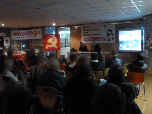 – Vous avez parfois accueilli dans vos cortèges des cortèges de travailleurs sans-papiers. Là aussi, vous avez eu raison parce que l’avenir est dans la constitution d’une grande force unie de tous sans-papiers, jeunes scolarisé ou pas, parents ou pas, travailleurs sans-papiers ou à la recherche d’un boulot ! Et au-delà, l’avenir est dans la force unie de tous les exploités ici et dans les pays d’origine !