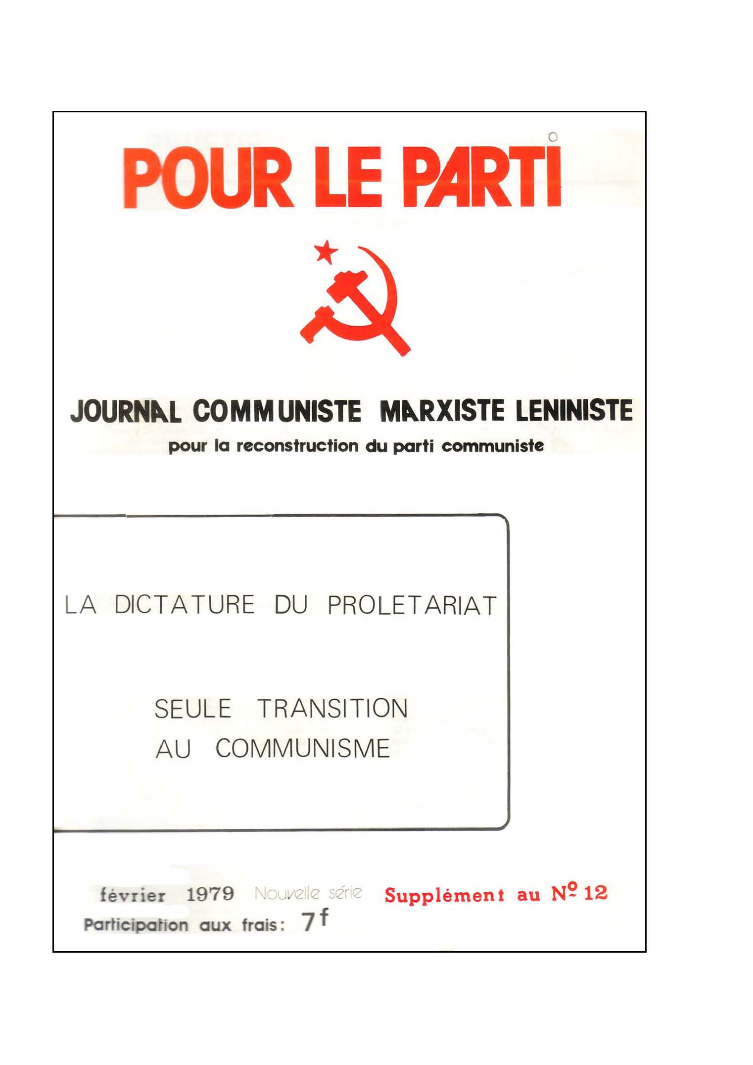 Résolution du Comité Central de l’OCML Voie Prolétarienne sur la brochure « La dictature du prolétariat, seule transition au communisme » (juillet 1979)
