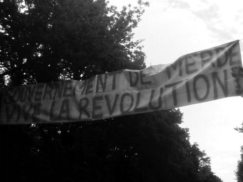 – Sympa la grande banderole sur la route : « Merde au gouvernement, vive la révolution » ! Qu’est-ce que vous mettez derrière ?
