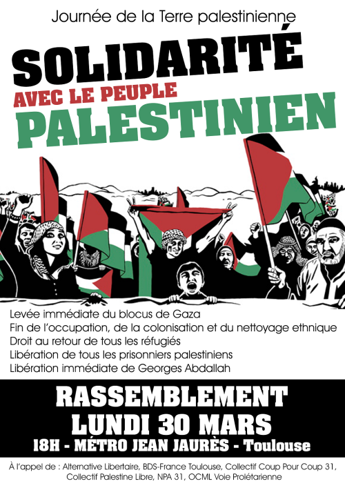 Actualité > Journée de la terre palestinienne : Solidarité avec le peuple palestinien !