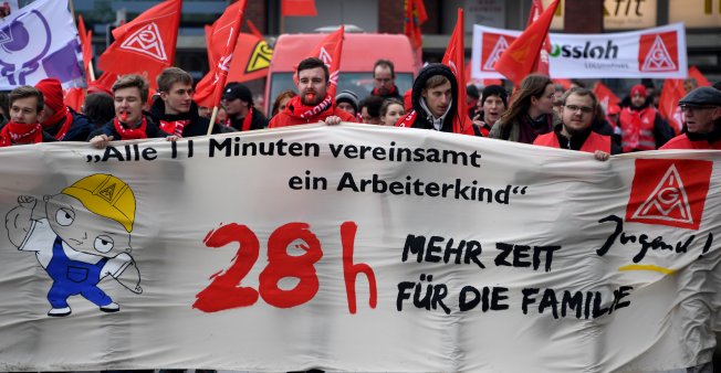 Le syndicat allemand de la métallurgie, IG Metall, a négocié auprès du patronat la possibilité pour les travailleurs de la métallurgie de passer aux 28 heures hebdomadaires pour une durée de 2 ans. Cela a été présenté par la presse comme une victoire du temps libre sur le travail. Il en est ressorti aussi l’idée que si les ouvriers sont dociles avec leurs patrons en période de crise (comme l’ont été les syndicats allemands il y a quelques années), ils finissent par en être récompensés plus tard lorsque l’industrie se redresse. En réalité, l’accord passée en Allemagne ne réduit pas le temps de travail, mais paradoxalement l’augmente ; il ne donne pas plus de liberté à l’ouvrier, il le soumet encore plus à la précarité capitaliste.