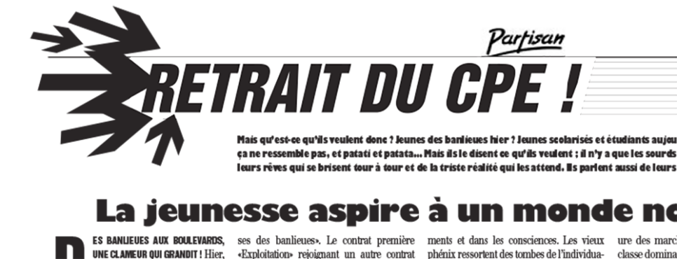 Vous êtes dans la rubrique > Archives > Retrait du CPE : la jeunesse aspire à un monde nouveau