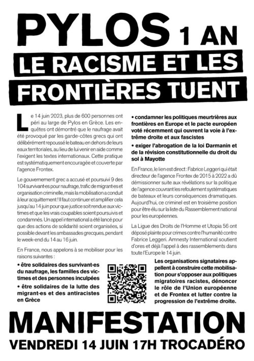 Actualité > Pylos 1 an : le racisme et les frontières tuent !