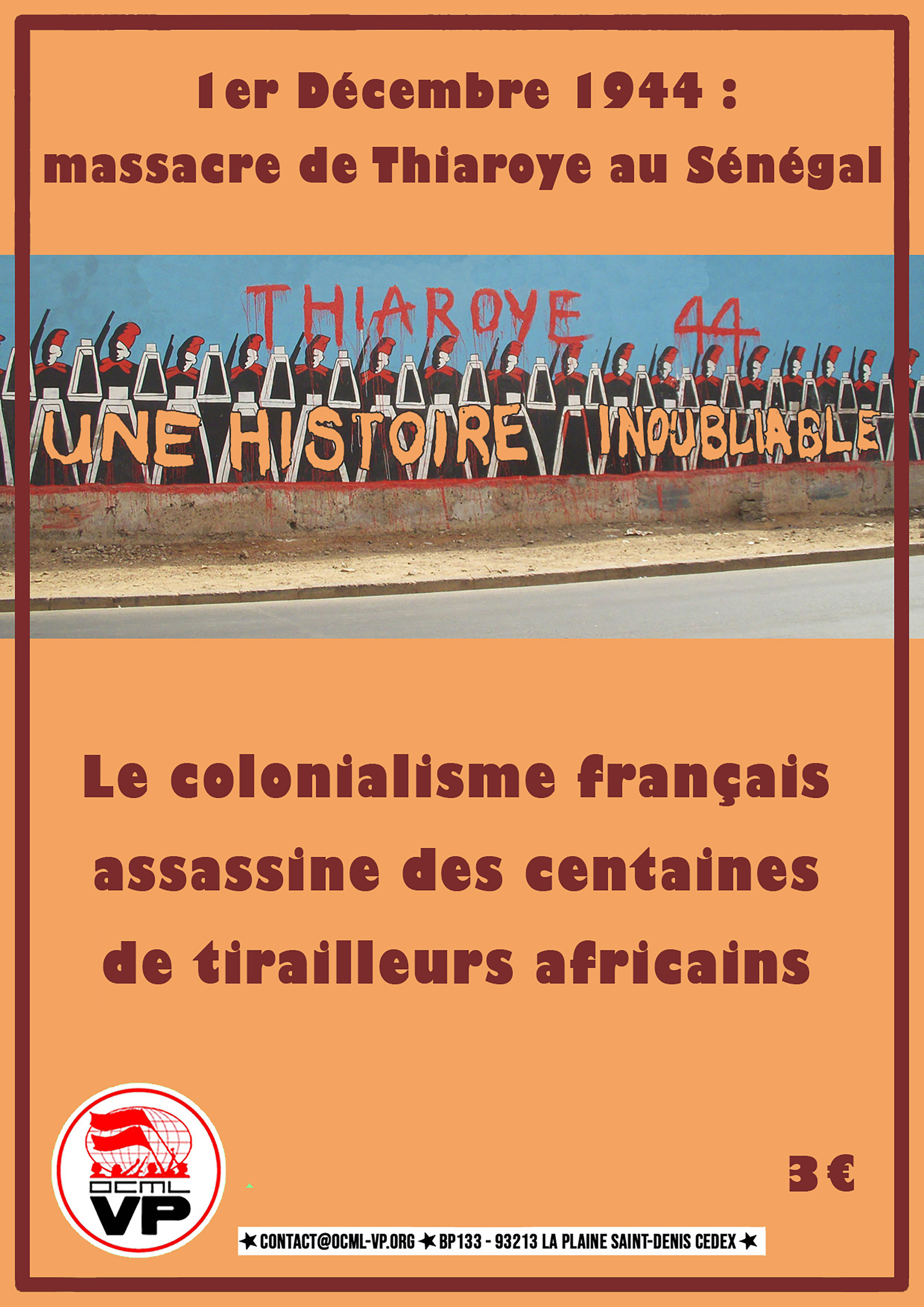 Nous avons demandé cette brochure à un camarade sénégalais, Maniang Fall, militant maoïste de ce pays, qui nous raconte le détail de ce massacre, le contexte colonial et raciste de l’époque, les raisons de cet épisode et les manipulations autour de cette date aujourd’hui. D’autant qu’avec le rejet de la Françafrique, les velléités de rupture de plusieurs gouvernements et le développement d’une certaine forme de panafricanisme dans toute la région ouest-africaine, l’anniversaire prend un sens très politique.