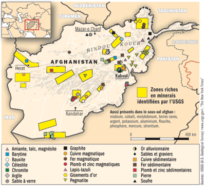 Outre l’intérêt stratégique de l’Afghanistan, se « dévoile » en juin, dans le New York Times l’inestimable richesse du pays en minerais. Quelques exemples : cuivre, lithium, or, cobalt, fer, pierres précieuses... Sans compter le gaz naturel qui est déjà pillé par les occupants impérialistes et leurs chiens de garde à l’intérieur du pays ; son exploitation a commencé il y a plus de 60 ans.