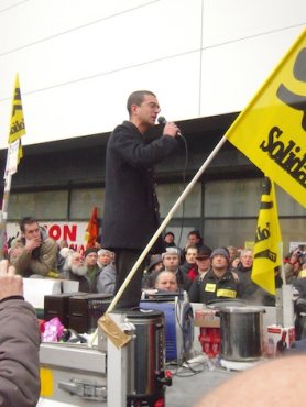 En novembre 2009, Alternative Post, une entreprise concurrente de La Poste, a cessé son activité du jour au lendemain. Les salarié-es, mis sur le carreau, manifestaient devant un centre de distribution courrier pour exiger leur embauche par La Poste. Olivier est allé apporter le soutien du syndicat aux salariés d’Alternative Post. Une action élémentaire pour un militant syndical.