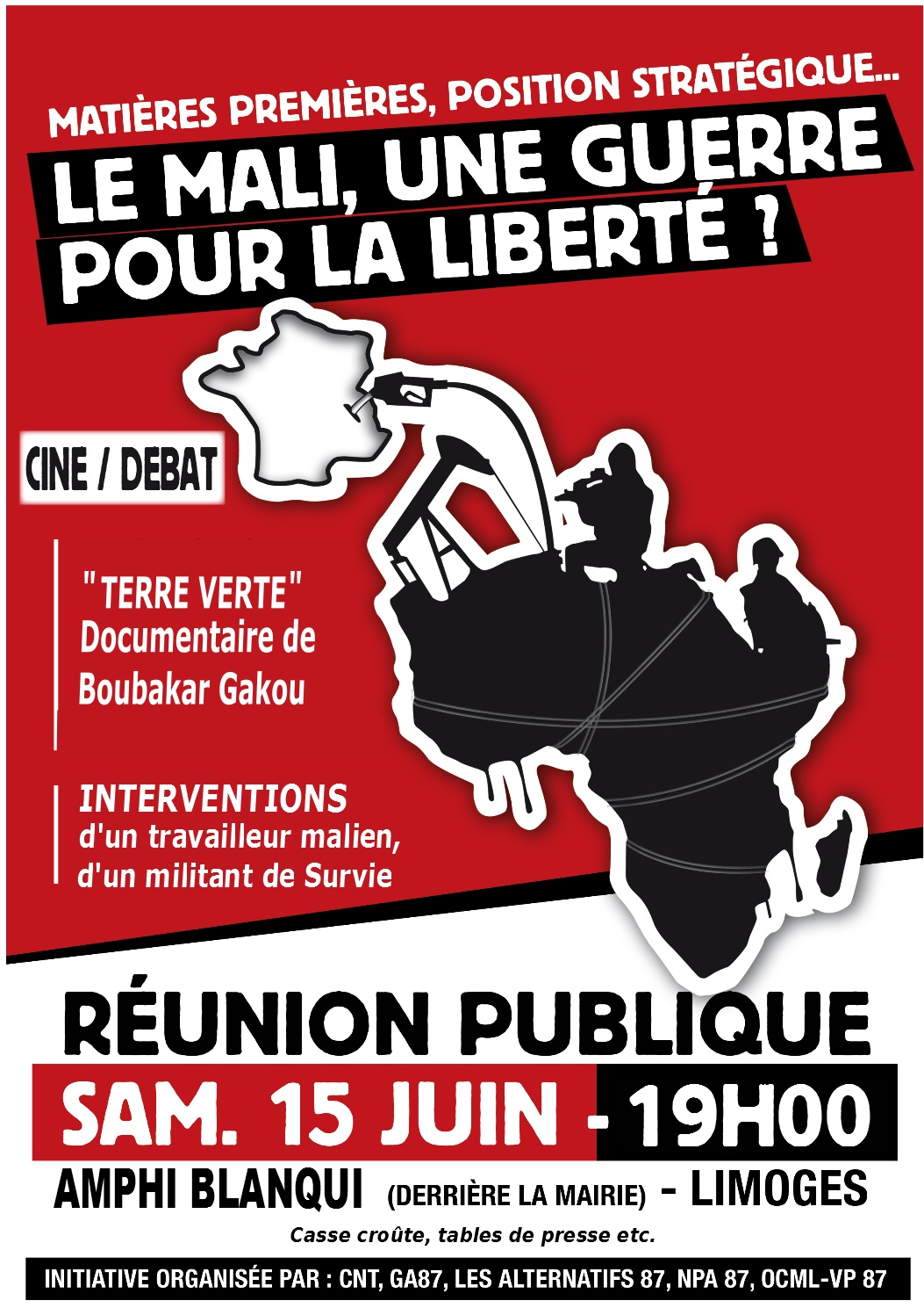 Nous vous proposons donc cette réunion publique « ciné/débat » pour comprendre les enjeux de cette intervention au Mali.