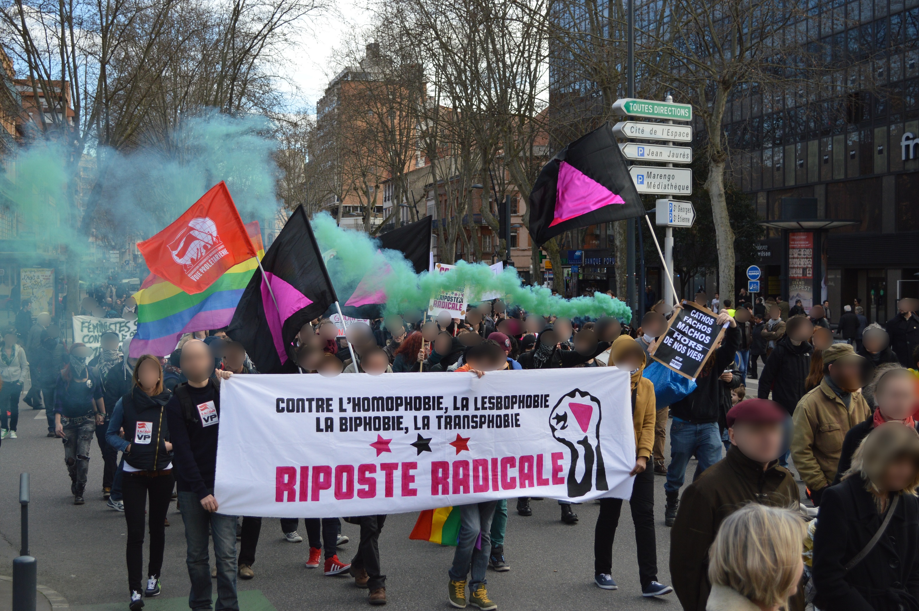 L’OCML Voie Prolétarienne a participé à cette manifestation dans le cortège appelé par le collectif Riposte Radicale qui a rassemblé près de 200 personnes. En effet, nous voulions protester contre les LGBTIphobies, le racisme et le fascisme tout en dénonçant la responsabilité du gouvernement PS/EELV et ne voulant pas se compromettre avec des forces réformistes telles que le Front de Gauche qui n’offre aucune alternative politique en rupture avec le capitalisme. Ce fut chose faite !