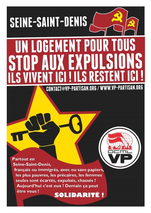 Prolétaires chassés des usines (PSA Aulnay), travailleurs sans papiers pourchassés et surexploités, jeunes dans la galère de la précarité, vieux dans la misère avec leurs retraites encore amputées, femmes seules avec leurs enfants, chômeurs au RSA ou pas encore, nous voilà les premières victimes des bourgeois, qu’ils soient partons dans les entreprises, politiques dans les ministères ou propriétaires de nos logements… Le logement, trop cher, trop petit, insalubre et les expulsions qui tombent, ce n’est pas affaire de bons sentiments, c’est une affaire de classe, de notre classe, c’est la même affaire que les restructurations et les licenciements, le chômage, la précarité et la misère, la guerre économique mondialisée.