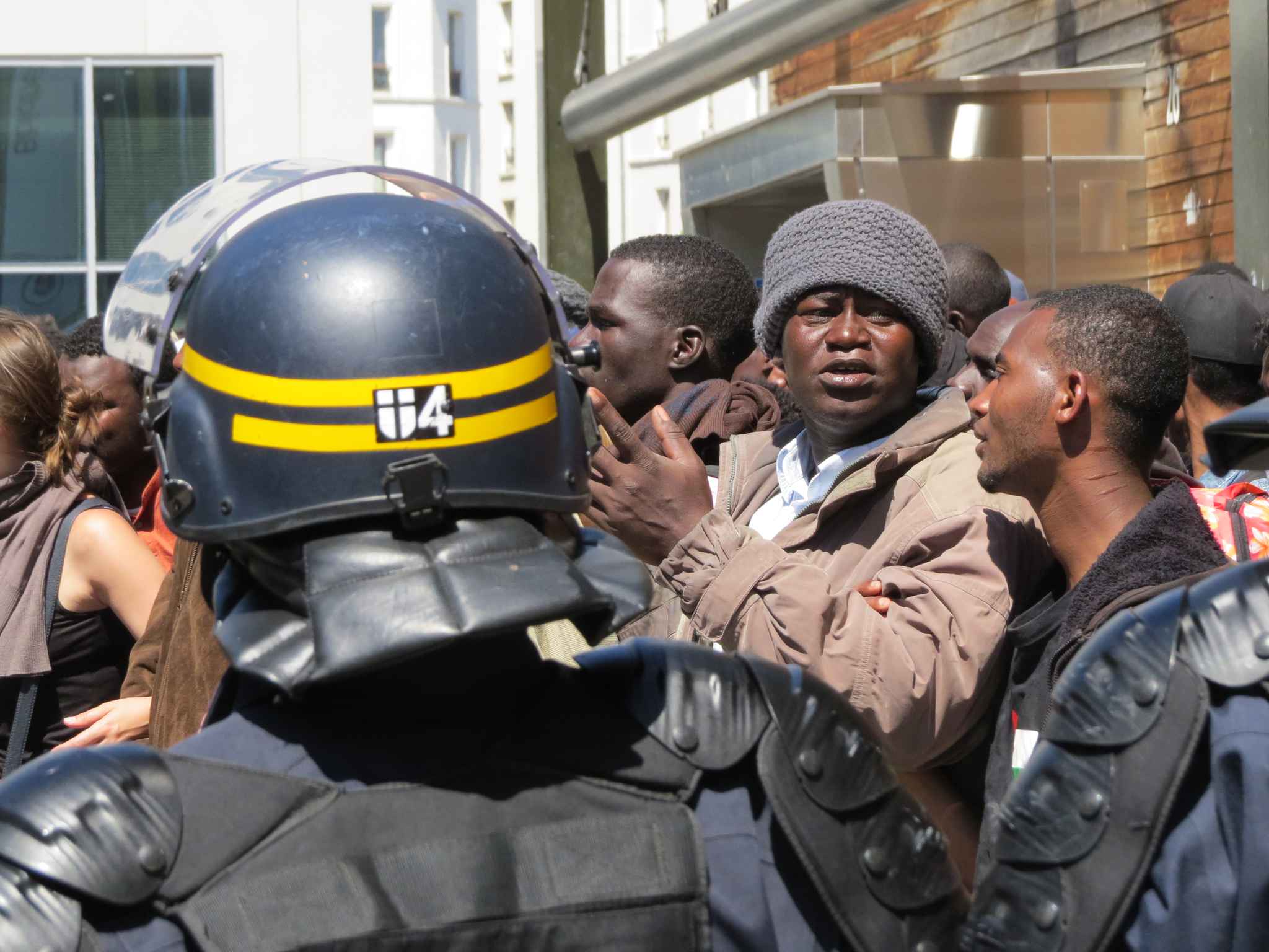 20 ans après l’expulsion des familles en lutte de l’Eglise Saint-Bernard (Paris 18°), dont les portes furent défoncées à coups de hache, mais « avec humanité et cœur » selon l’ex-Ministre de l’intérieur de droite, Jean-Louis Debré, la répression et les expulsions continuent. C’est donc avec « humanité et fermeté » que Cazeneuve et Hollande délogent les réfugiés sans-papiers du trottoir parisien où ils luttent pour une vie digne, cette même « humanité et fermeté » avec laquelle Valls traite les rroms ! Ah on voit bien la différence de politique verbeuse par rapport à la droite, quand Sarkozy et Hortefeux revendiquaient « fermeté et humanité ». Des migrants arrêtés et dispersés dans tous les centres de rétention de la région parisienne, des violences policières (coups, pied fracturé, testicule écrasé…) voilà le bilan de la politique « humaine » du PS au pouvoir ! Ce ne sont pas quelques écharpes tricolores des « élus de la république » qui vont arrêter la répression bourgeoise quand la misère créée par le capital déborde au cœur des métropoles impérialistes !