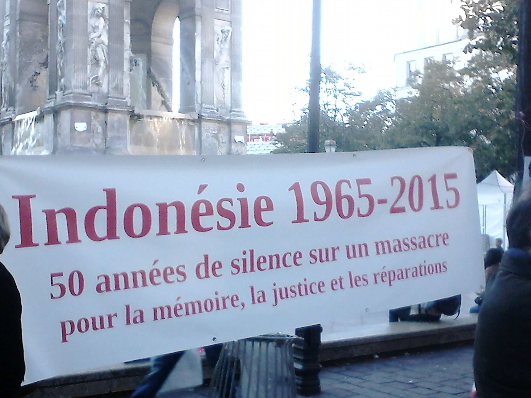 En Indonésie, les criminels anti-communistes sont toujours au pouvoir. En célébrant le 60eme anniversaire de ce crime, nous réclamons justice. Nous nous réclamons de leur combat ici en France, c’est le sens de notre présence à ce rassemblement.