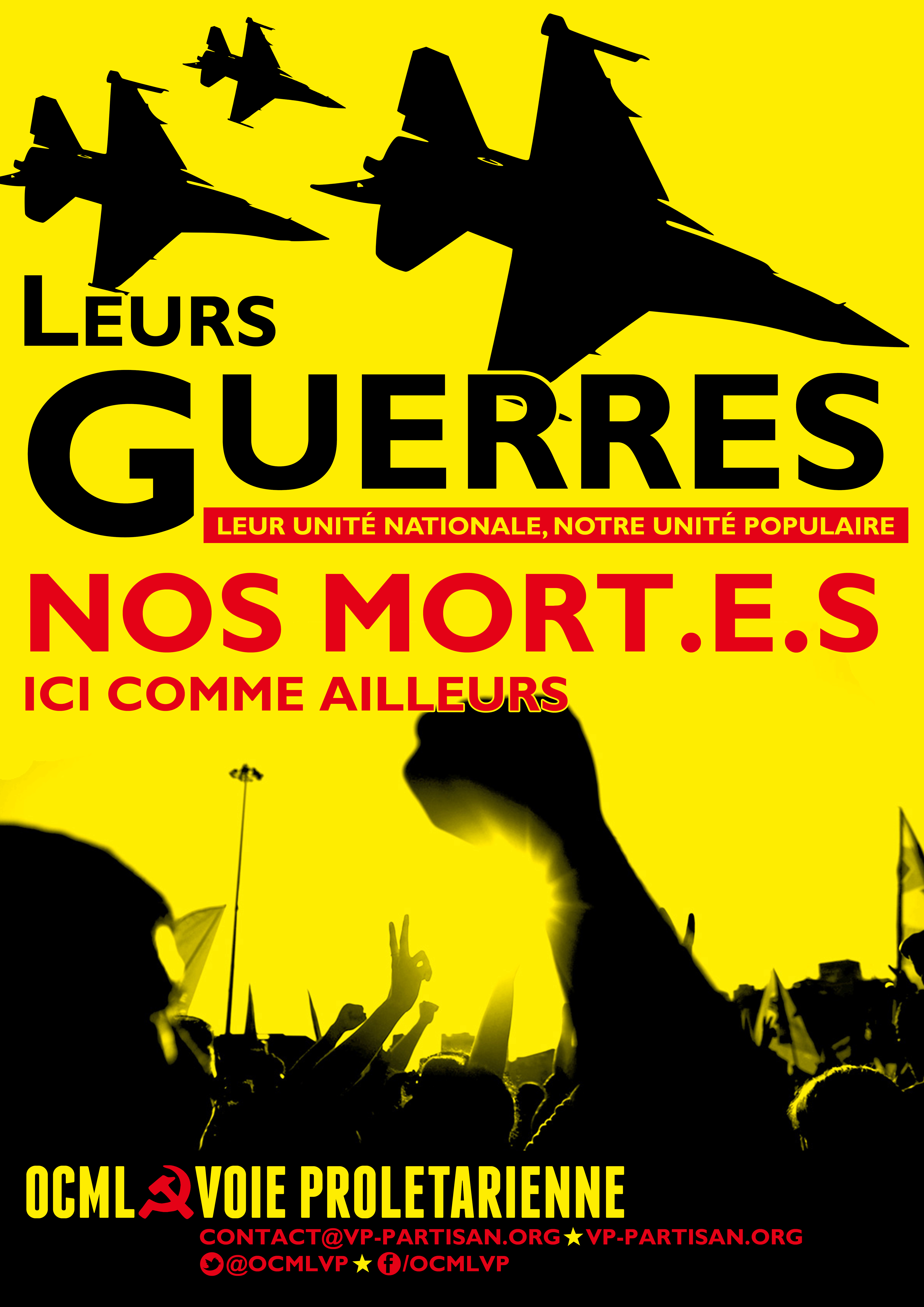 Partout, c’est notre guerre que nous devons mener avec courage, la guerre de classe, celle des sans-papiers pour leurs droits, celle des travailleurs d’Air France ou d’ailleurs contre les licenciements et l’exploitation, celle de la solidarité avec les migrants, la guerre de tous les prolétaires contre les gouvernements impérialistes…