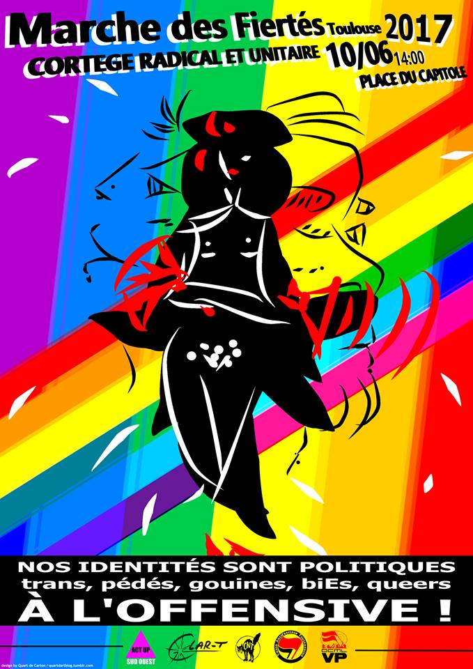 NOS IDENTITES SONT POLITIQUES TRANS PÉDÉ BIES GOUINES À L’OFFENSIVE ! Samedi 10 juin - 14H - Place du Capitole - Toulouse