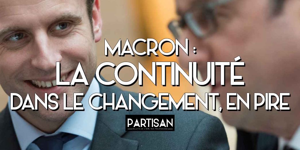 Macron, c’est la continuité, le fils illégitime de Hollande et de Sarkozy, la synthèse parfaite pour faire face au déclin de la France impérialiste dans la crise capitaliste mondialisée.