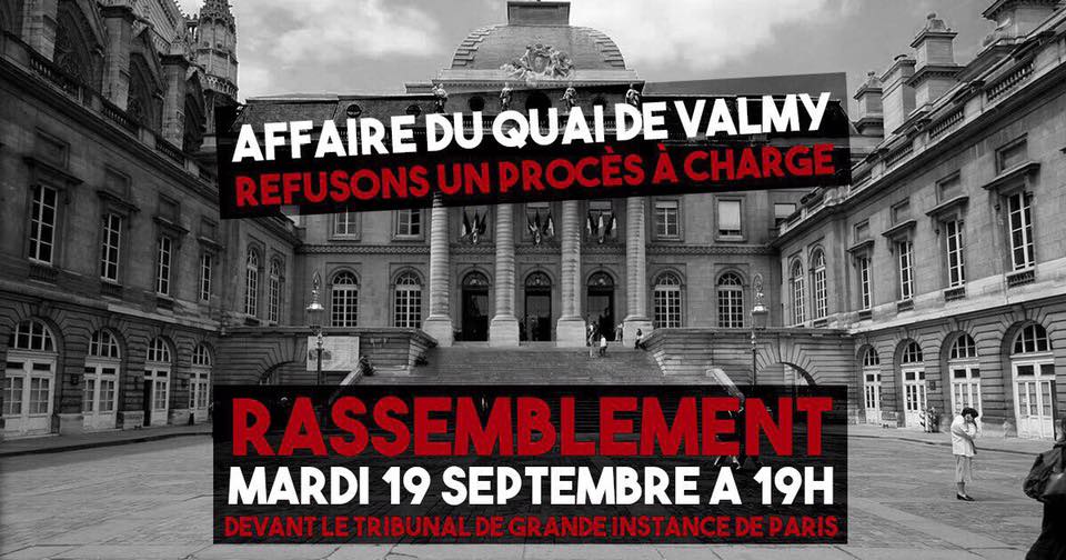 Leur procès débute le 19 septembre et se termine le 22 septembre à la 14ème chambre correctionnelle du TGI de Paris. Nous appelons tous les jours à nous y rendre à 13h.