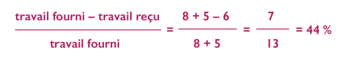 Qu’en est-il pour l’homme et pour la femme ? Chacun a fourni 8 heures de travail mais n’a reçu de travail social (d’eux-mêmes et de la société) que 6 heures. Le reste de leur travail a profité à d’autres (les capitalistes). De leur point de vue, par rapport au travail fourni, leur taux d’exploitation est :