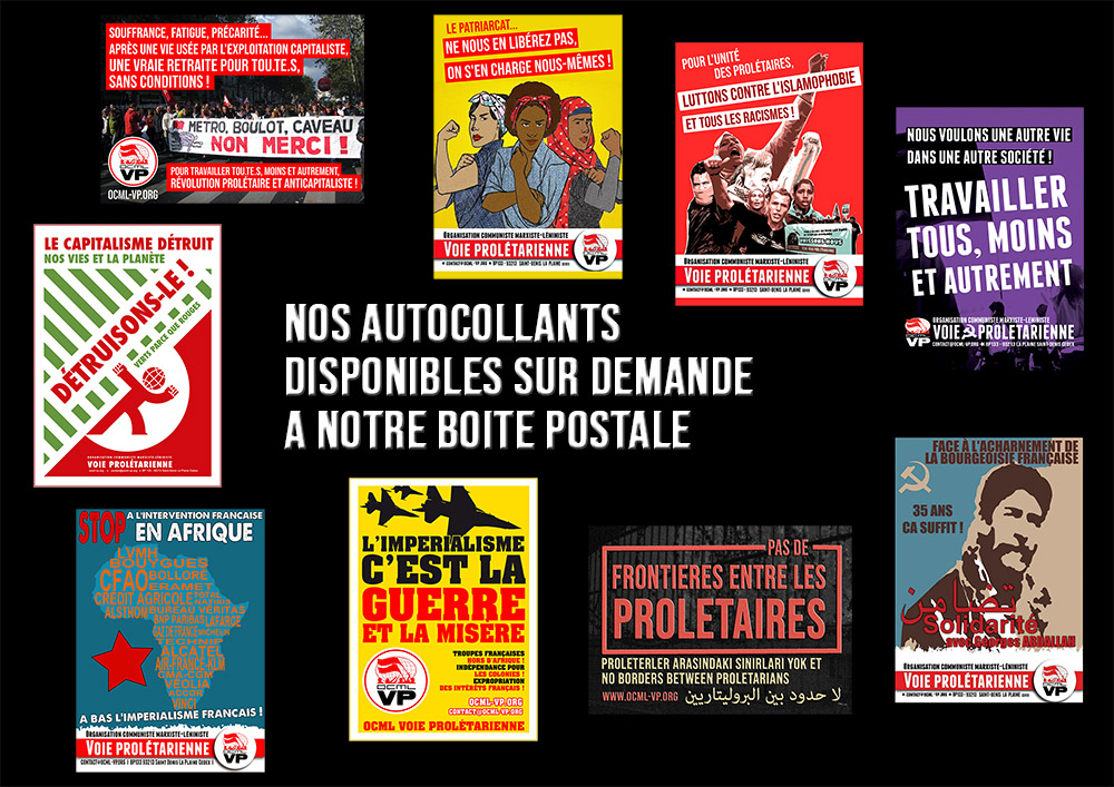 Notre organisation vient de ré-imprimer cette série d’autocollants, mis à jour ou complètement nouveaux. D’autres suivront éventuellement, suivant les exigences de l’intervention politique !