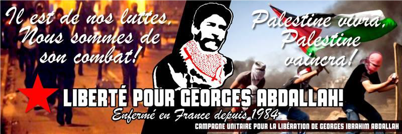 Campagne unitaire pour la libération de Georges Abdallah - ACTA - média autonome et partisan - Action antifa NP2C - Association Nationale des Communistes (ANC) - Campagne internationale de solidarité avec Ahmad Sa’adat - CAPJPO-EuroPalestine - Cases Rebelles - Collectif "Bassin minier" pour la libération de Georges Ibrahim Abdallah - Collectif Contre Les Abus Policiers (CLAP33) - Collectif de soutien à la résistance palestinienne (CSRP59) - Collectif Jaunes Etc33 - Collectif Libérons Georges 33 - Collectif Palestine Vaincra - Collectif pour la libération de Georges Ibrahim Abdallah (CLGIA) - Collectif pour la libération de Georges Abdallah 65 - Collectif 69 de soutien au peuple palestinien - Comité d’action et de soutien aux luttes du peuple Marocain - Comité de soutien international à la guerre populaire en Inde - Comité "Libérez-les ! " (59-62) - Front Uni des Immigrations et des Quartiers Populaires (FUIQP) - GRC - International Solidarity Movement -France (ISM-France) - Jeunes révolutionnaires - L’Appel belge pour la libération de Georges Abdallah - Le Cri rouge pour la libération des prisonniers révolutionnaires - Le Réseau de soutien aux prisonniers palestiniens Samidoun - Nouveau parti anticapitaliste (NPA) - OCML Voie Prolétarienne - Orchestre Poétique d’Avant-guerre (OPA) - Parti des Indigènes de la République (PIR) - Plateforme Charleroi-Palestine, Belgique - Plateforme des prisonniers politiques en Turquie et au Kurdistan - Secours Rouge Lille - Soccorso Rosso Proletario Italia - Solidarité Georges Abdallah Lille - Union Juive Française pour la Paix (UJFP)