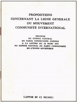 Il s’agit de fait de la lettre de rupture entre le Parti Communiste Chinois et le Parti Communiste d’Union Soviétique, après plusieurs années de débats et de polémiques. Même s’il reste selon nous des aproximations et erreurs, c’est un texte de base dans la constitution du mouvement maoïste contre le révisionnisme.