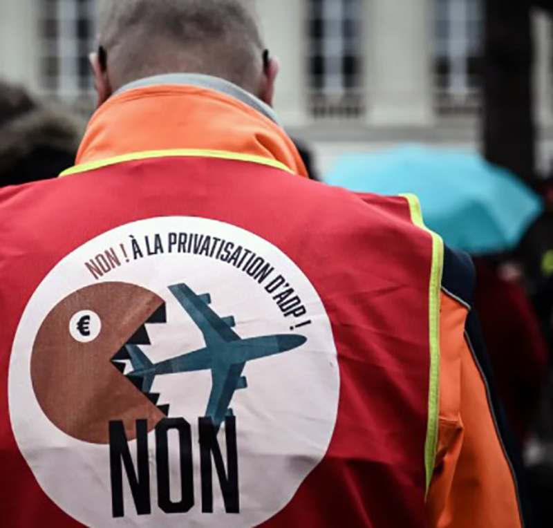 Le 9 avril 2019, des députés et sénateurs du PCF, de la France insoumise, du PS et des Républicains ont déclenché le processus qui permettra peut-être l’organisation d’un Référendum d’initiative Partagée (RIP) pour refu-ser la privatisation du groupe Aéroport de Paris (ADP), qui possède les aéroports d’Orly et de Roissy, qui est souhaitée par le gouvernement LREM. Pour déclencher le RIP, il est nécessaire de récolter les signatures de 10% des membres du corps électoral d’ici le 20 avril 2020, soit de plus de 4 millions de personnes.