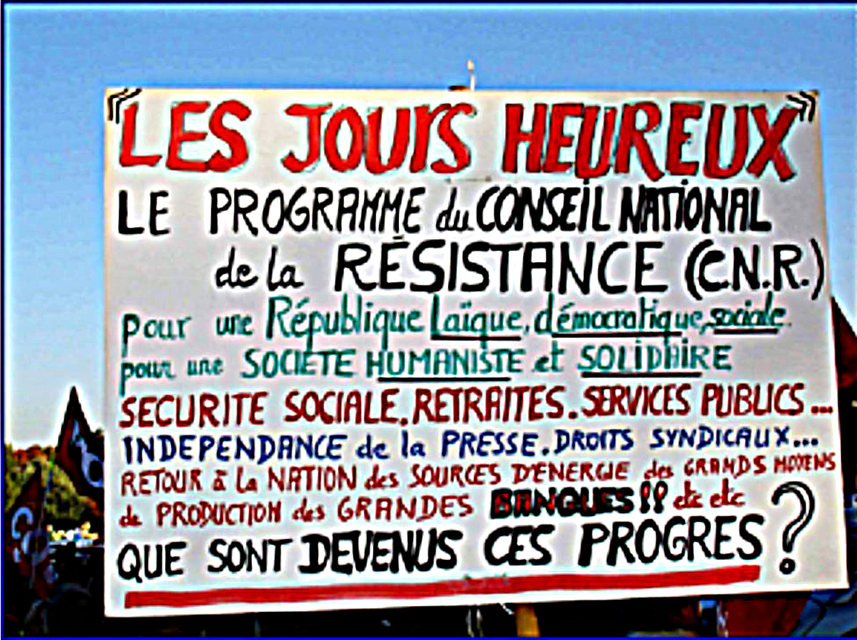 Le fond du programme du CNR, c’est celui qu’on entend encore aujourd’hui : nationalisations, service public, meilleure partage des richesses, mais surtout pas de révolution. C’est le programme du capitalisme à visage humain.