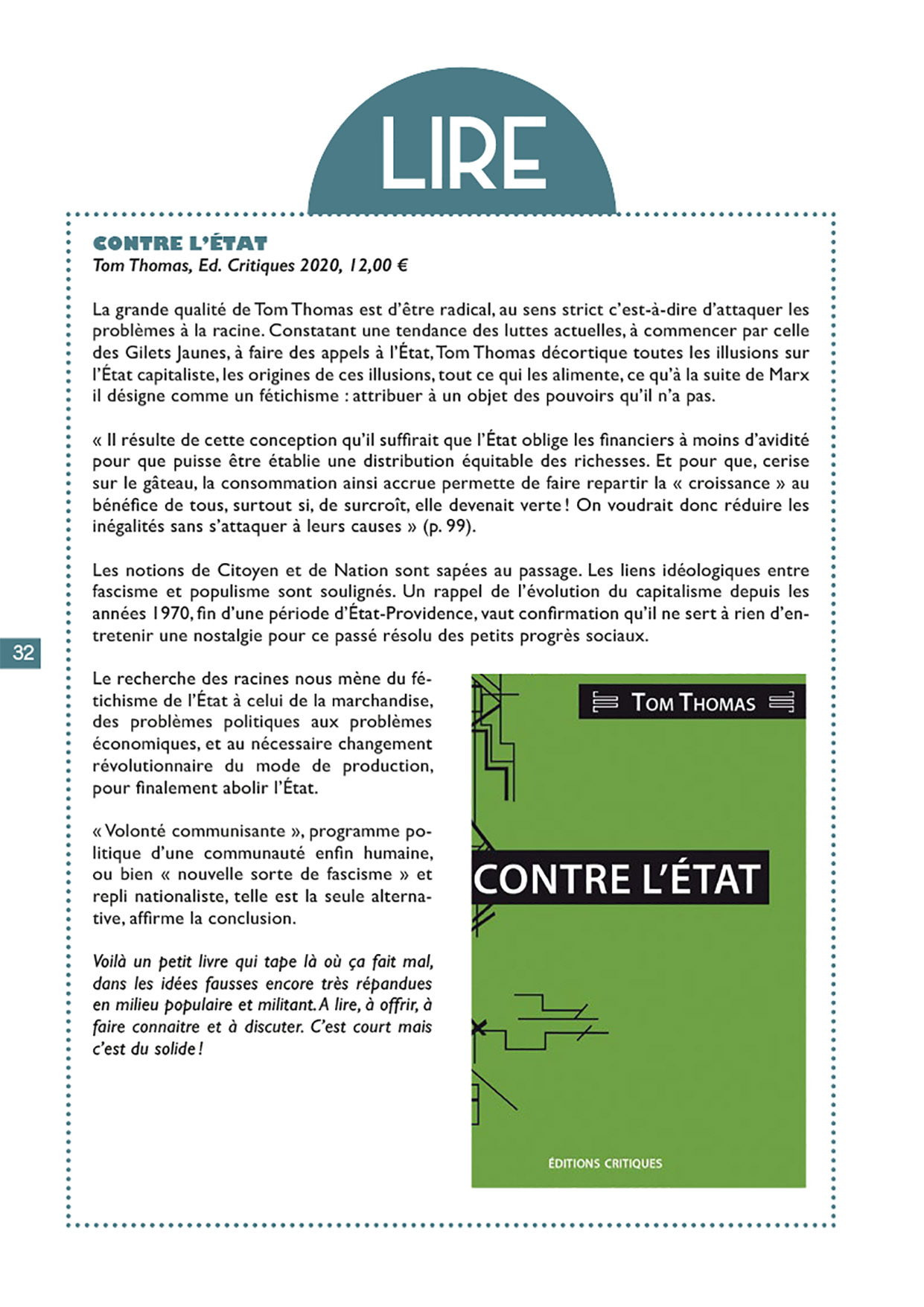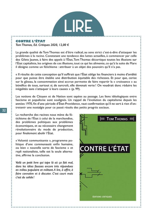 Approfondir > A lire : "Contre l’Etat" de Tom Thomas Partisan magazine 2021-01-02 A lire : "Contre l’Etat" de Tom Thomas Partisan Magazine N°16 - Janvier 2021