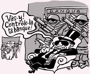 Un petit livre (*) dénonce un certain nombre de ces mécanismes. Il s’ouvre sur cette citation croustillante de Henry Ford (1863-1947), le fondateur de la Ford Motor Cie : « Il est une chance que les gens de la nation ne comprennent pas notre système bancaire et monétaire, parce que si tel était le cas, je crois qu’il y aurait une révolution avant demain matin ». Ce livre explique donc. Comment a été inventée la monnaie. Comment l’Etat a abandonné son monopole d’émission de la monnaie. Etc. Il devient délirant dans la deuxième partie, « Propositions », quand il affiche son réformisme et démontre comment rembourser la dette ! On peut zapper cette deuxième partie, ou trouver savoureux cet exemple d’imagination réformiste des classes moyennes. Rembourser la dette, c’est respecter l’engagement pris vis-à-vis des capitalistes de taxer et d’exploiter les travailleurs pendant des dizaines d’années. A la différence d’un capitaliste privé, l’Etat a les moyens de faire sa propre loi et sa propre police pour se faire rembourser (puis rembourser les banques), y compris en tirant sur les ouvriers ou en déclenchant une guerre impérialiste. C’est pourquoi il a la préférence des investisseurs de capitaux.