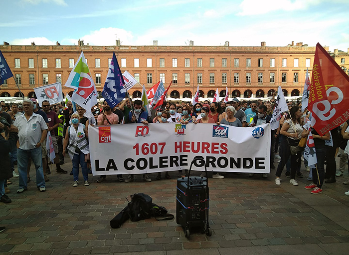 Et puis, un autre conflit larvé depuis l’an dernier parmi les territoriaux dans toute la France, qui n’a pas réussi à s’élargir et prendre un caractère national. Pourtant, Toulouse, Clermont-Ferrand, Lille, Grenoble, Paris, Aubervilliers, partout c’est le conflit contre la remise en cause des horaires de travail, contre l’annualisation à 1607h imposée par la nouvelle loi de transformation de la fonction publique (article 47). Annualisation qui aboutit à la suppression de jours de congés, l’allongement de la durée de la journée de travail etc. C’est en fait l’application à la fonction publique des règles de flexibilité déjà largement appliquée dans le privé depuis des dizaines d’années (loi Aubry de 1998 etc.).