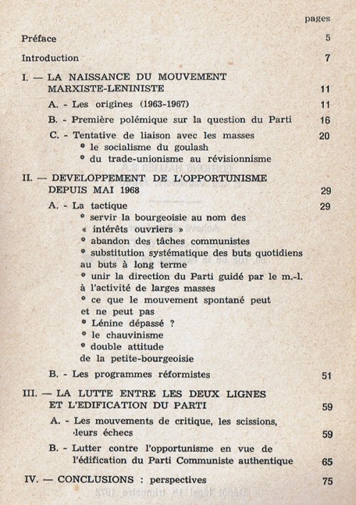 Malgré ses limites et ses erreurs, la brochure que nous rééditons est une pierre importante dans l’histoire du mouvement marxiste-léniniste, première critique approfondie des courants du PCMLF ou de la Cause du Peuple de l’époque.
