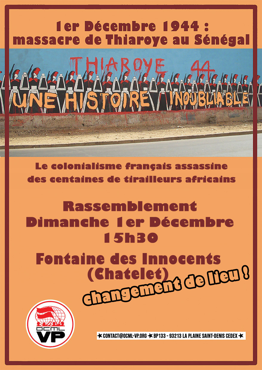 L’OCML Voie Prolétarienne prend donc l’initiative d’appeler à un RASSEMBLEMENT, Dimanche 1er Décembre à 15h30, Place de la République pour commémorer cette date sanglante et dénoncer l’intervention impérialiste de la France en particulier en Afrique et dans les colonies.