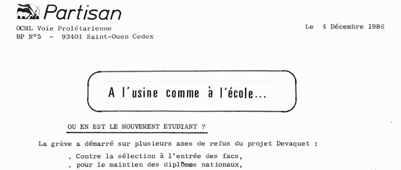 Archives > Loi Devaquet : à l’usine comme à l’école