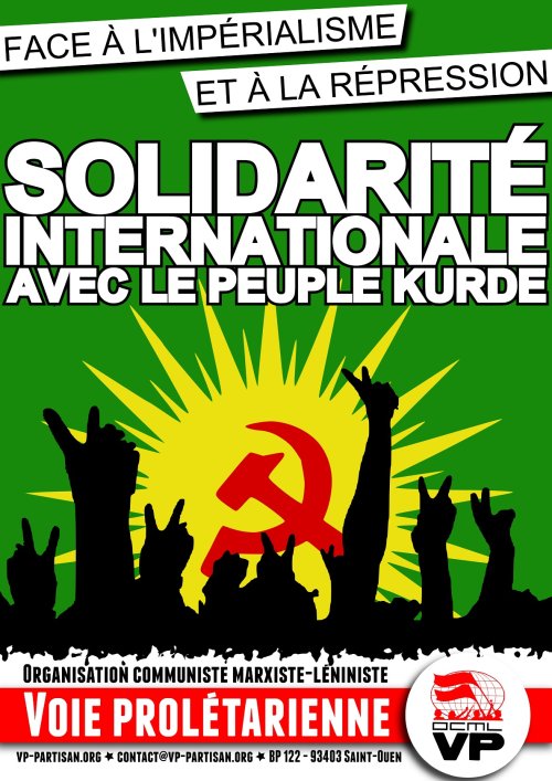Kürt halkının mücadelesiyle ve Fransa ya da Avrupa’da şantiye ve fabrikalarda bizimle birlikte sömürülen Kürt arkadaşlarımızla dayanışma göstermekteyiz. Fransa’daki tüm yabancı kökenli arkadaşlarımız işçi sınıfının bir parçasıdır. Tüm sosyal ve siyasi haklarda eşitlik için, serbest dolaşım hakkı, oturum hakkı ve kapitalist sömürünün ortadan kaldırılması için ortaklaşa mücadele edelim !