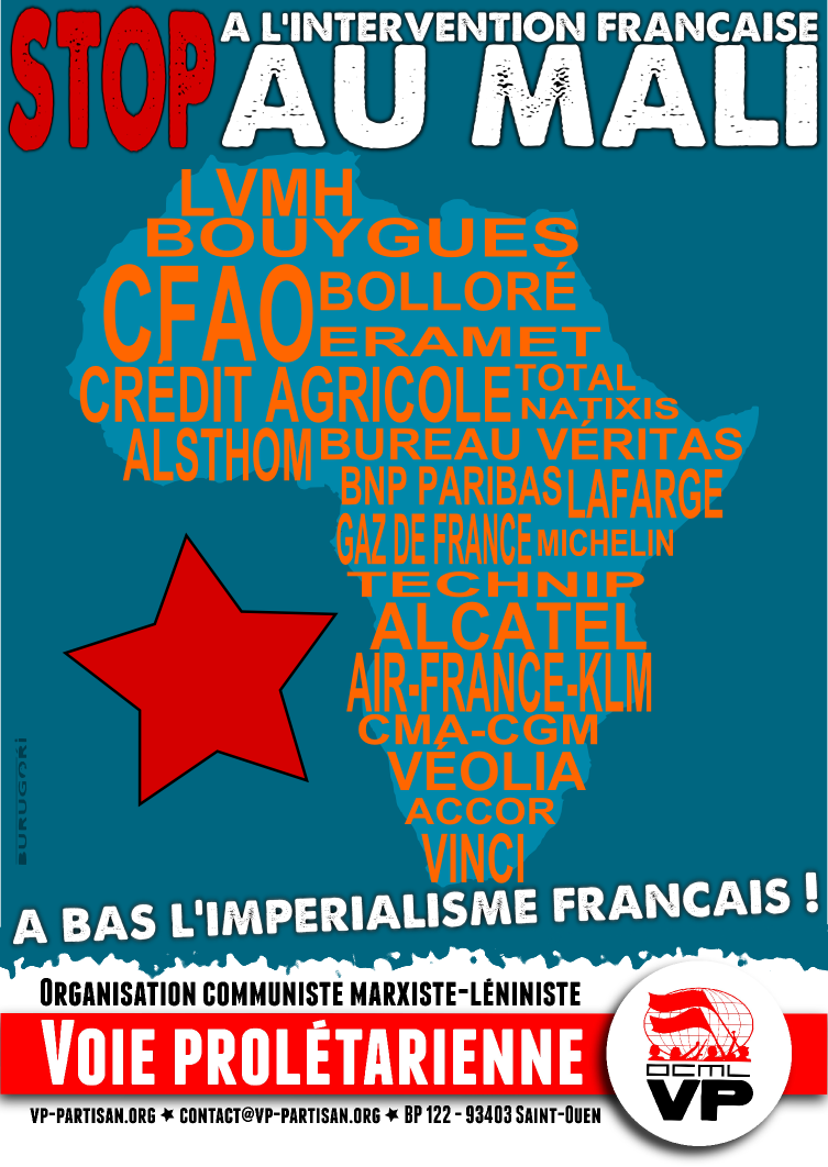 As communists, we declare our solidarity with the people of Mali and our immigrant comrades. We support the struggle for the development of a truly independent and fair Mali, which can not be but if of the workers and farmers of Mali :