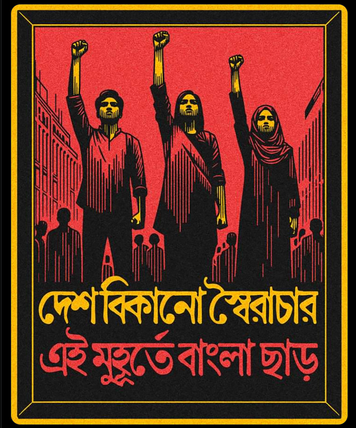 • D’une manière générale, la révolution se présente sous la forme d’un chaos généralisé. Dans cet ébranlement de l’ordre capitaliste ordinaire, des tendances et initiatives d’extrême droite, racistes et anti-communistes, ne manquent pas de se déchainer. L’organisation d’un nouvel ordre, d’un nouvel Etat (populaire) s’impose dans l’urgence de la situation. Les étudiants et travailleurs bangalais ont protégé les temples hindous, les églises chrétiennes et les boutiques tenues par des minorités (dans un pays composé à 90 % de musulmans).