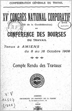 En ce qui concerne les organisations, le Congrès décide qu’afin que le syndicalisme obtienne son maximum d’effet, l’action économique doit s’exercer directement contre le patronat, les organisations confédérées m’ayant pas, en tant que groupements syndicaux, à se préoccuper des partis et des sectes qui, en dehors et à côté, peuvent poursuivre, en toute liberté, la transformation sociale. »