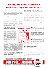 Si le FN espère gagner des voix ouvrières, c’est parce qu’il n’y a plus de parti suffisamment fort pour nous organiser sur les bases de classe et internationalistes. Il n’y a plus de parti pour défendre les intérêts des prolétaires et pour faire ainsi obstacle aux idées réactionnaires ou à celles des réformistes, moins dangereuses, mais qui souvent labourent le terrain pour les autres.