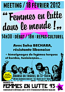 Véritable succès de l’initiative de Femmes En Lutte 93 au meeting du 18 février à la bourse du travail de Saint-Ouen : une centaine de personnes ont répondu à notre appel, venues de divers horizons, des femmes que nous avons contactées par diffusion de tracts et enquêtes sur le marché, des étudiantEs de la fac de Paris 8 en quête d’un vrai féminisme, des associations du département stimulées par notre style de militantisme libre et non institutionnel. Comme l’a reconnu une militante de Femmes solidaires, « vous avez réussi à lier théorie et pratique ».