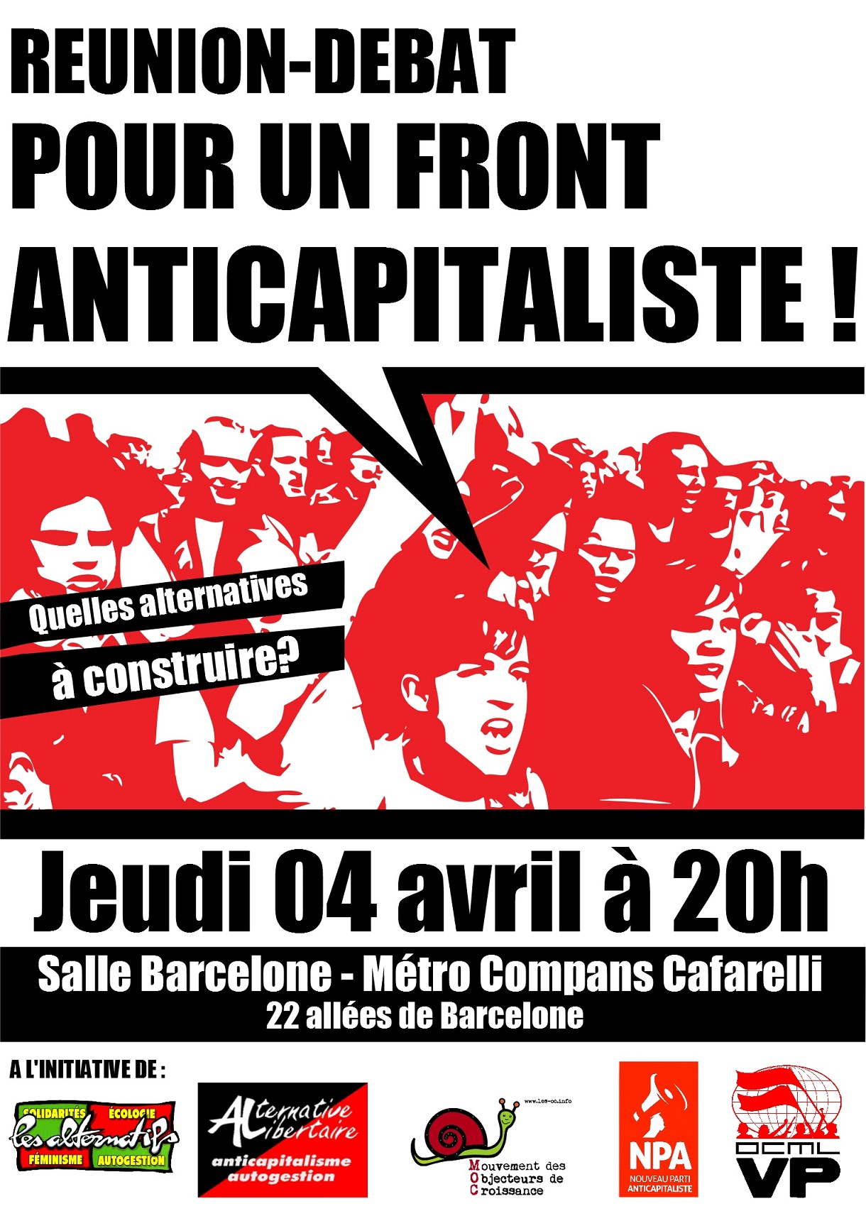 Signataires : Les Alternatifs, Alternative Libertaire, Mouvement des Objecteurs de Croissance, Nouveau Parti Anticapitaliste, OCML Voie Prolétarienne