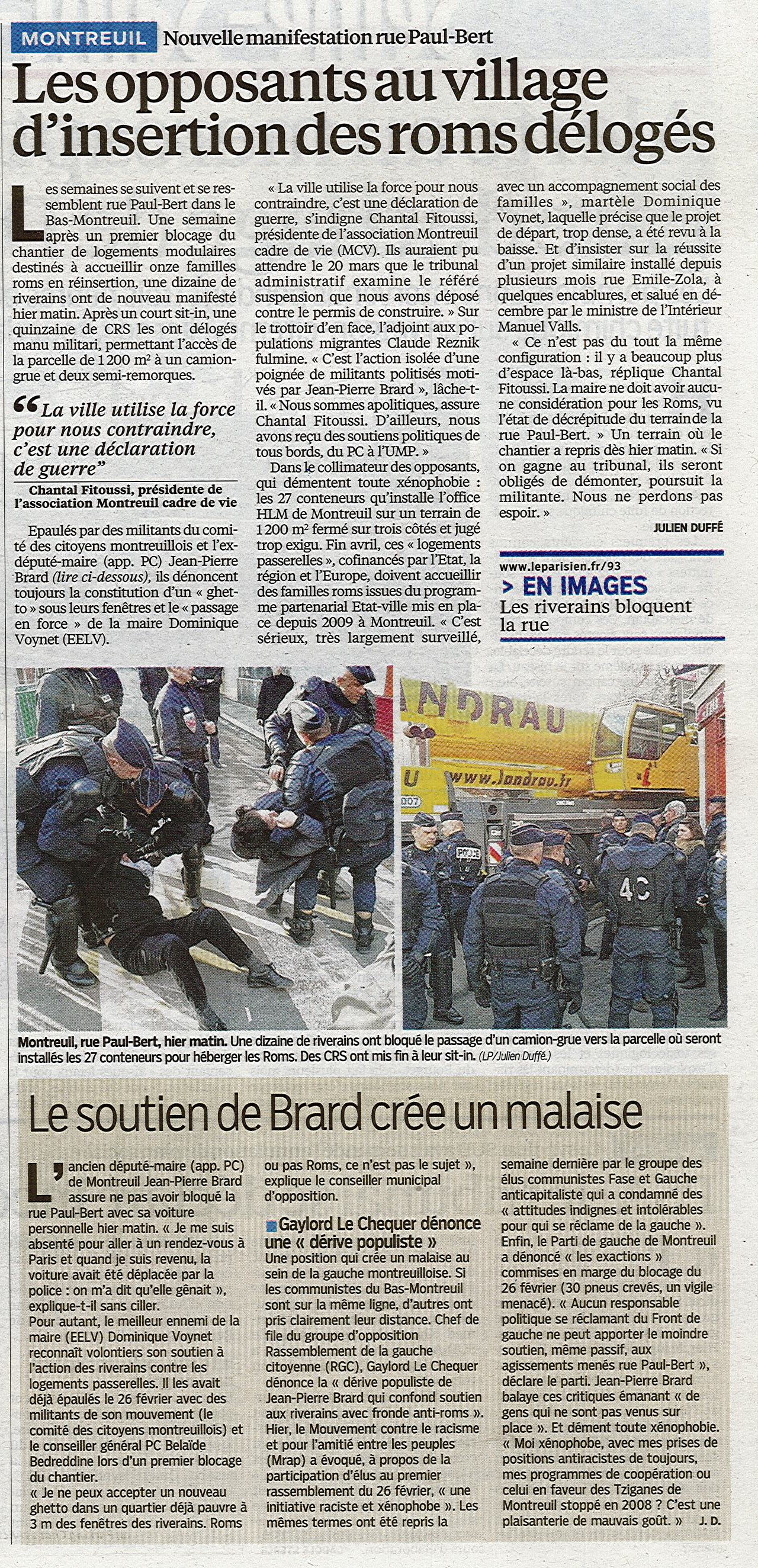 Les Rroms à Montreuil (93) variable d’ajustement entre la mairie (EELV) et l’opposition Front de gauche ?