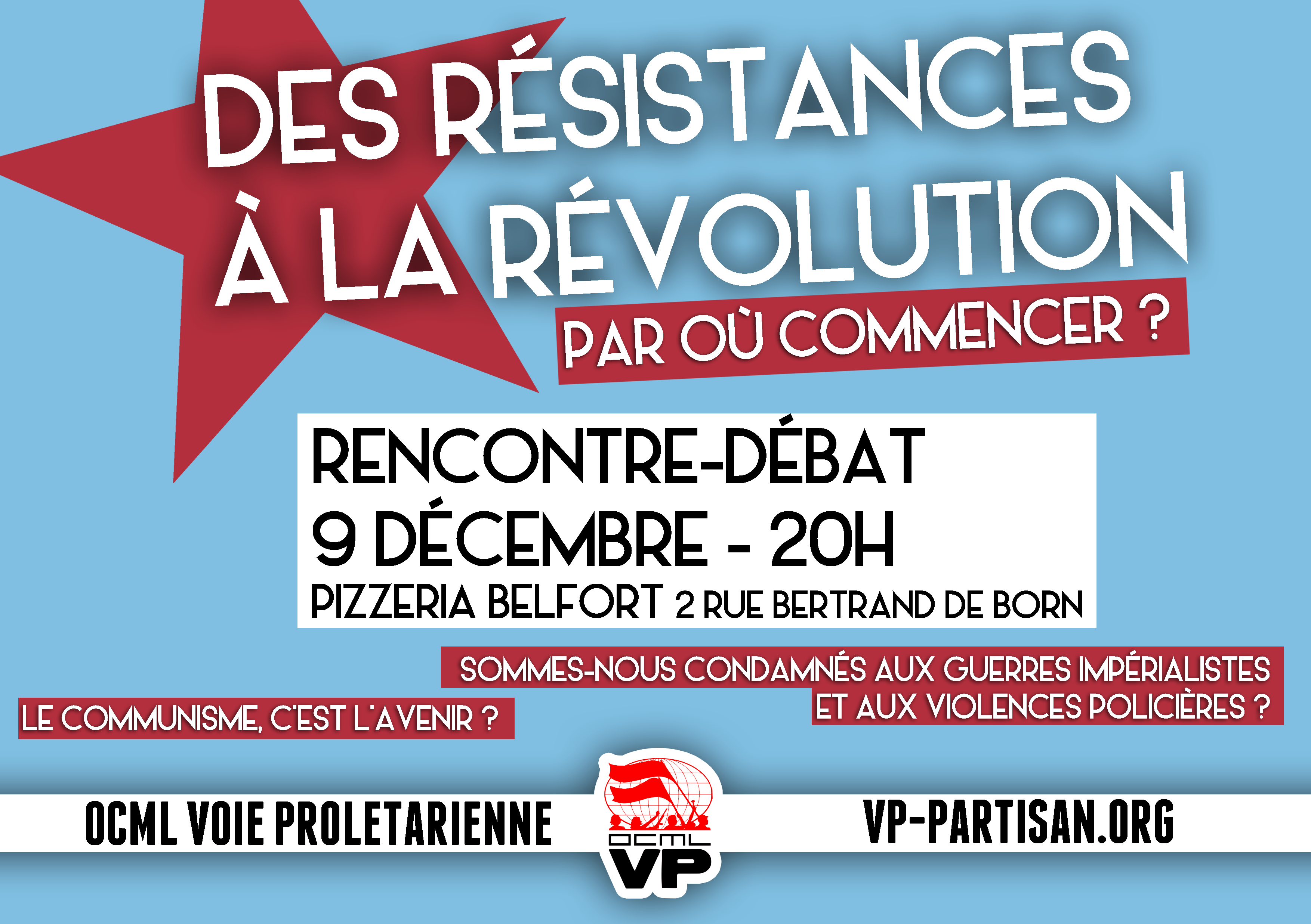 L’OCML Voie Prolétarienne vient de tenir son 9ème Congrès, ce sera aussi l’occasion de vous présenter nos orientations, et d’échanger ensemble.