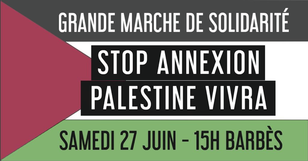 Un collectif de partis et d’associations appelle à manifester contre les projets d’annexion de la Palestine par Netanyahou, sur la base du texte ci-dessous.