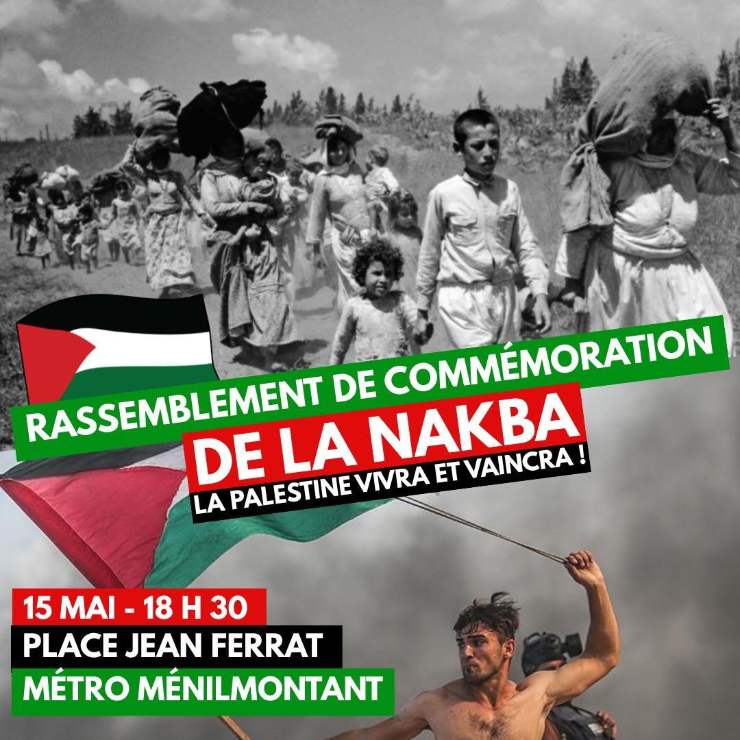 À l’occasion des commémorations de la Nakba, dénonçons sa continuation, défendons tous les soutiens au peuple palestinien, rassemblons-nous le 15 mai à Ménilmontant et le 17 mai, place de la République.