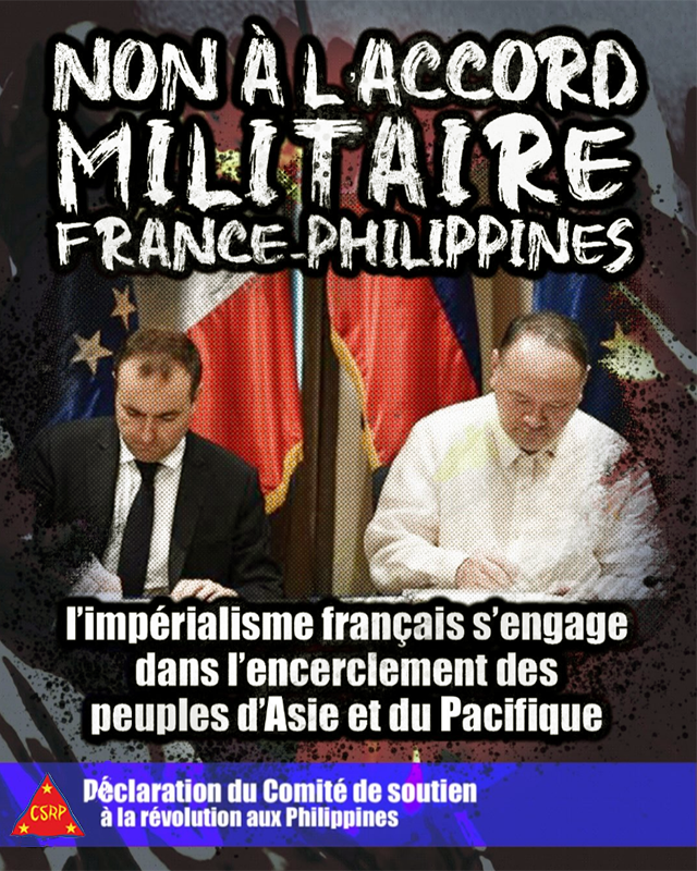 Le CSRP condamne fermement cet accord et invite les forces anti-impérialistes de France et du monde entier à s’y opposer. Ne nous laissons pas tromper par le langage diplomatique. Il ne s’agit pas d’un accord de défense entre deux États souverains, mais d’un nouvel anneau dans la chaîne des alliances militaires tissées par les puissances impérialistes autour des Philippines, avec l’assentiment des États-Unis, afin de faire de ce pays un avant-poste de l’impérialisme face à la Chine dans l’Indo-Pacifique.